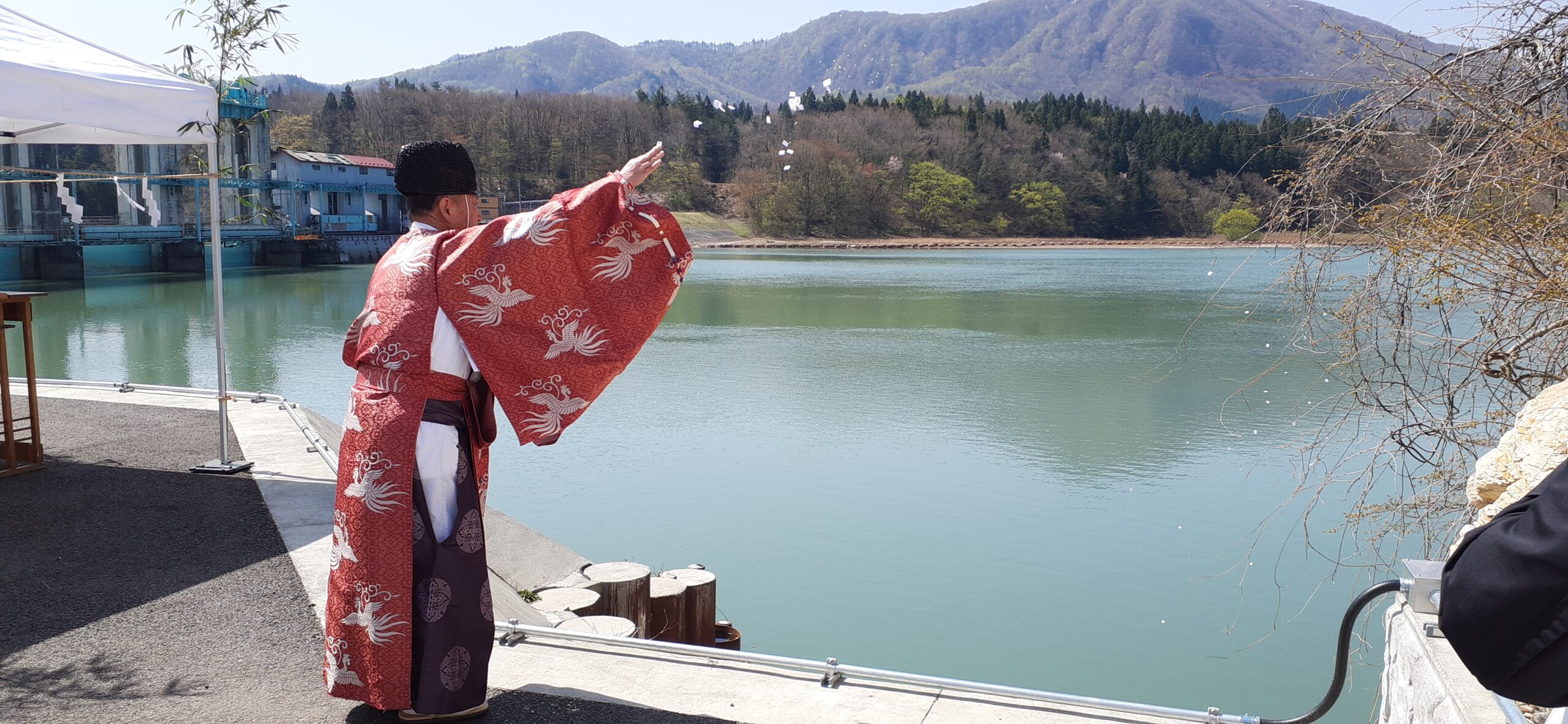 令和8年4月17日(金)北上市和賀町横川目の「石羽根ダム取水口」にて、通水式を挙行いたしました。当日は、役職員ほか、国、県、関係市町村の方々にご出席いただき、五穀豊穣と水管理の安全を祈願いたしました。